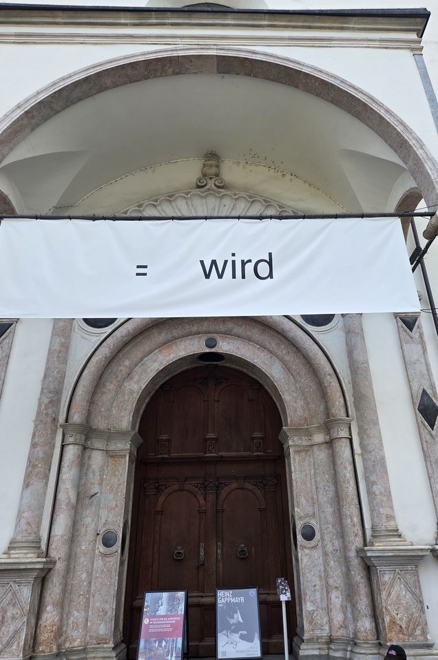 Deshalb organisierte die Obfrau des Freundeskreises des Tiroler Volkskunstmuseums am 16. September für ihre Mitglieder und des Forum Land eine Führung mit Gaby Gappmayr, der Tochter und Nachlassverwalterin des Künstlers in Form eines Stadtspazierganges zu ausgewählten Stationen der Ausstellung im öffentlichen Raum. Sie giab Einblicke in die Ideenwelt und das künstlerische Denken Gappmayrs und die Bedeutung von Schrift als künstlerisches Ausdrucksmittel. In dessen Arbeiten geht es um Möglichkeitsräume und um ein anderes Sehen und ein neues Denken von Sprache.