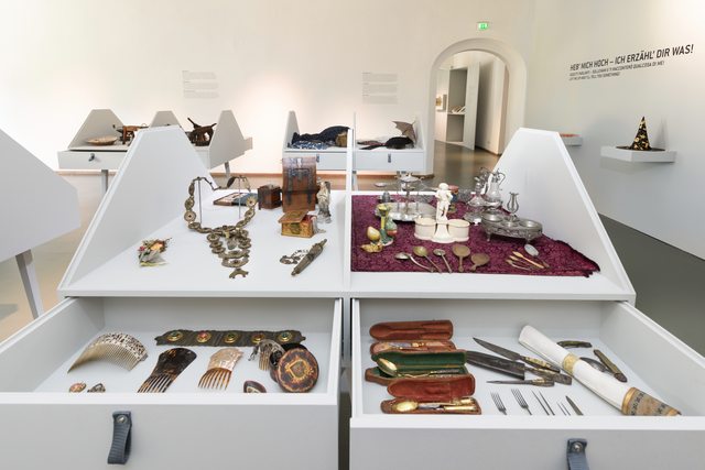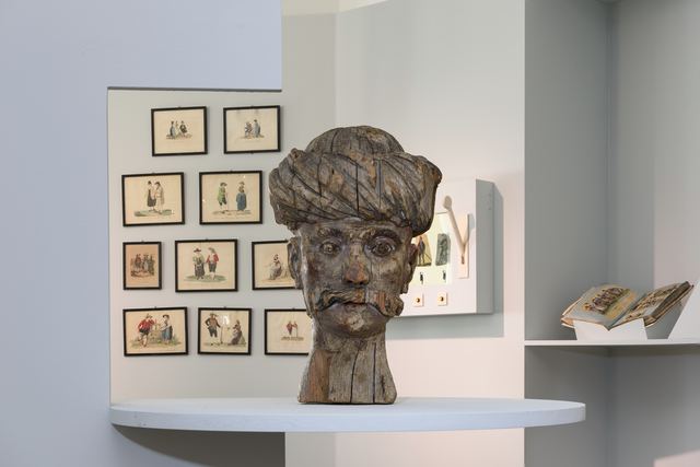 Kulturkontakte lassen aber auch Stereotype entstehen – Fremdbilder über die „Anderen", die sich zwischen Faszination und Abgrenzung bewegen. Der Tschibuk rauchende Orientale als Uhrenständer oder Kaminfigur, goldverzierte Mohren in der Krippe, türkische Tücher in der Tracht – solche Objekte brachten Exotik in den Alltag. Sie waren wie ein ferner Gruß aus einem unbekannten Land: dosiert und gezähmt, weit weg und nicht bedrohlich.