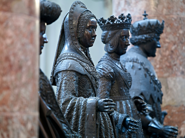 Hauptattraktion sind die 28 überlebensgroßen Bronzestatuen, welche das imposante Hochgrab Kaiser Maximilians I. flankieren. Die "Ahnengalerie" stellt seine Verwandtschaft aus der Habsburgerfamilie, aber auch seine persönlichen Vorbilder wie den sagenhaften König Artus dar. Die Figur des Kaisers kniet betend auf seinem Kenotaph.